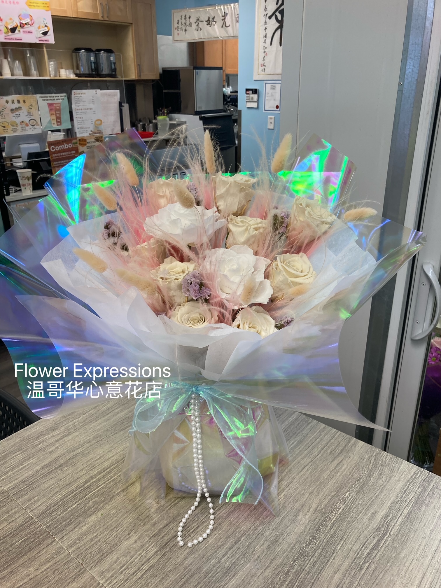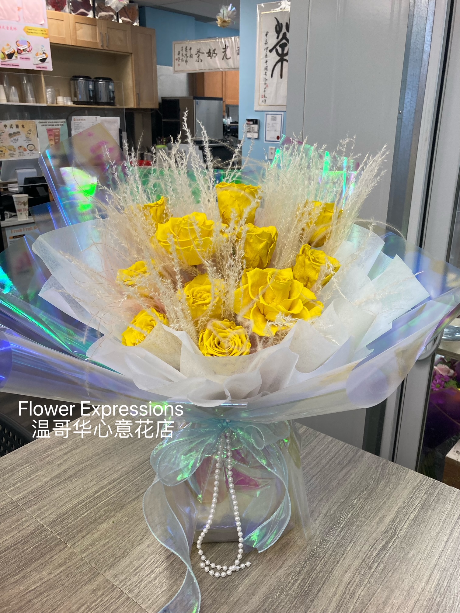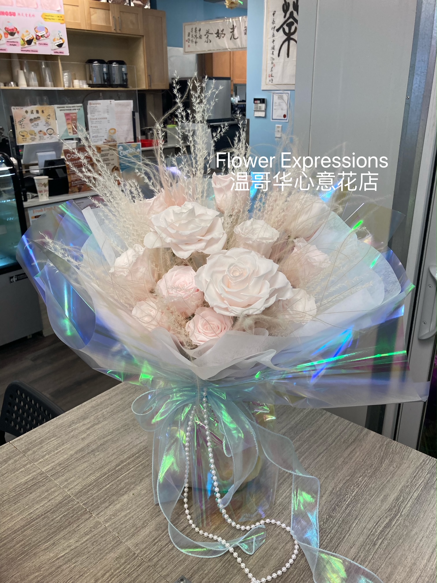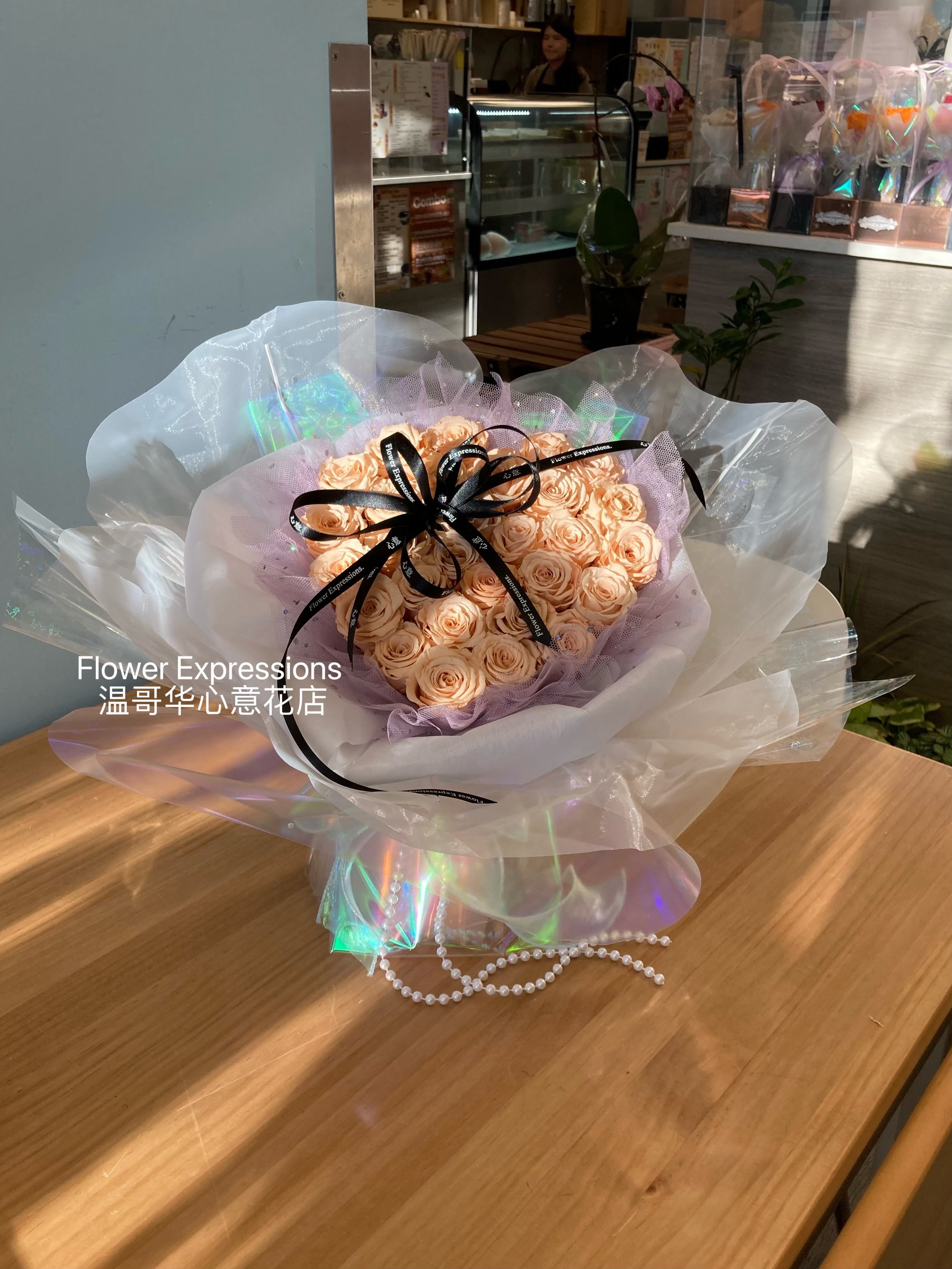 永生玫瑰是指对新鲜玫瑰采取特殊工艺,经干燥,脱水等一系列工序精心培育而成。永生玫瑰保持了玫瑰的天然色彩,娇媚与质感,外观上与新鲜玫瑰花无异,但可保存较长时间。为收花人带去你特别的心思与祝福。
